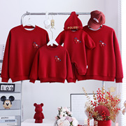 2026马年一家三口四喜庆拜年服红色卫衣亲子装属马本命年过年衣服
