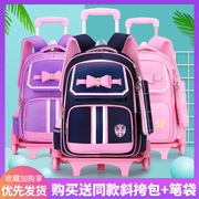 韩版儿童拉杆书包女孩小学生三到六年级大容量防水爬楼拖拉式背包