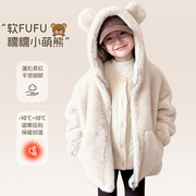 儿童皮草外套休闲童装小熊加厚保暖连帽男童宝宝皮草女童冬季大衣