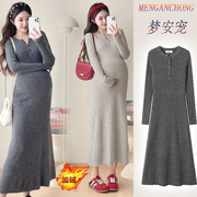 孕妇装法式新款春秋内搭秋冬装加绒保暖纯色圆领遮肚托腹显瘦裙子