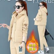 妈妈秋冬马甲三件套中老年加绒加厚运动服套装女防寒冬装外套新款