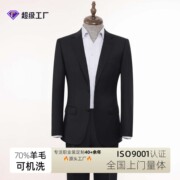 秋冬毛呢军绿中山装男中老年套装老人羊毛呢中老年人爷爷装厚实