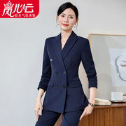 藏青色西装外套女秋冬2025新款气质双排扣职业套装工作服正装6258