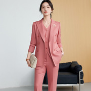 春秋新款粉色职业西装套装修身御姐范显瘦直筒裤正装工作服三件套