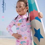 韩范女童泳衣连体长袖防晒中小童宝宝儿童游泳衣女孩沙滩冲浪服潮