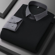 秋冬季男士假两件针织百搭衬衫领外套男毛衣内搭恤加绒加厚打底衫