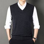 100%纯羊毛背心男加厚V领无袖中年爸爸装休闲纯色针织马甲毛衣男