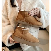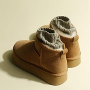 真皮牛反绒皮毛一体雪地靴女厚底加绒加厚保暖短筒棉鞋