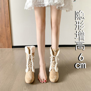2025秋冬季新款复古3cm内增高流苏编织绑带拳击靴百搭显瘦堆堆靴