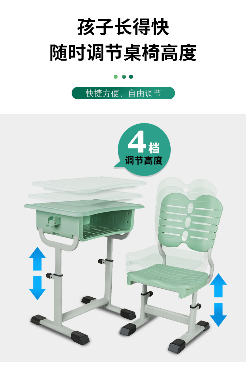 学生升降课桌椅 学课桌椅写字书桌 C型果绿色抽芯弯升降课桌椅子