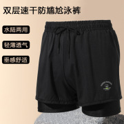 宽松时尚泳裤男士双层防尴尬专业款五分速干泳衣运动沙滩游泳装备