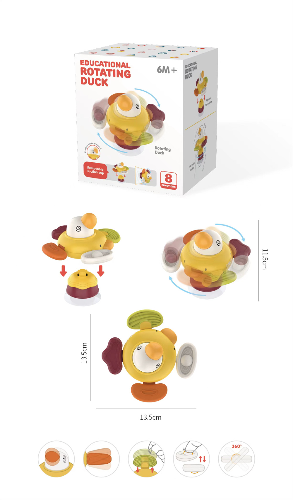 跨境餐桌吸盘转转乐萌鸭带牙胶磨牙益智哄娃喂饭安抚神器婴儿玩具