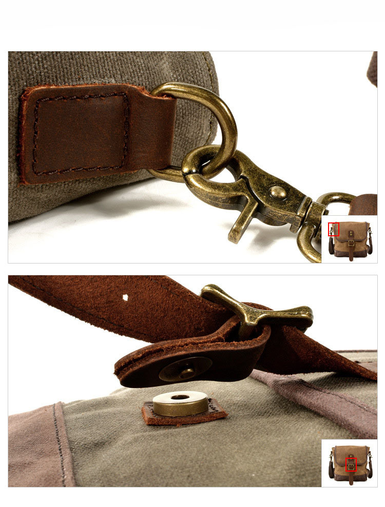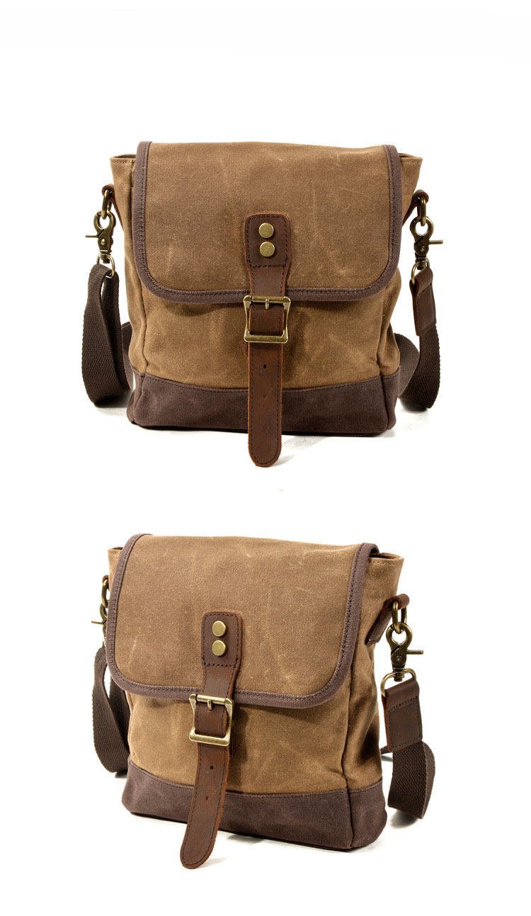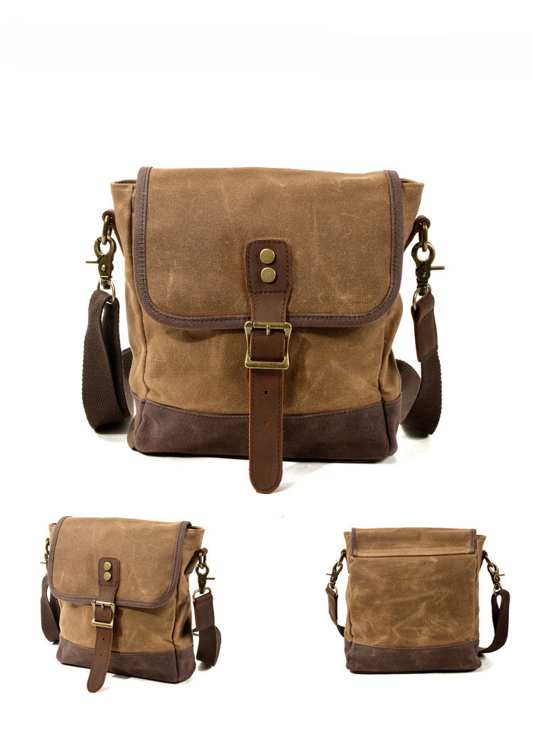 日韩系新款男式潮流斜挎包单肩包油蜡帆布配皮休闲包户外旅行小包