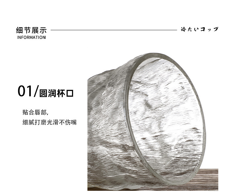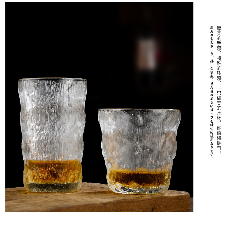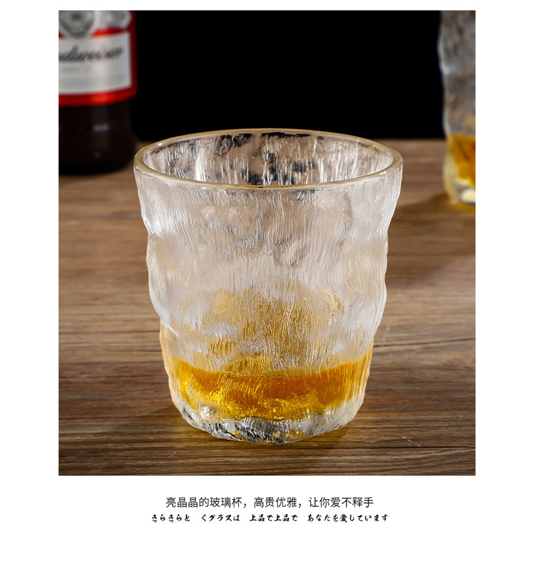 网红冰川纹玻璃透明杯家用水杯创意啤酒杯威士忌酒杯日式锤纹杯