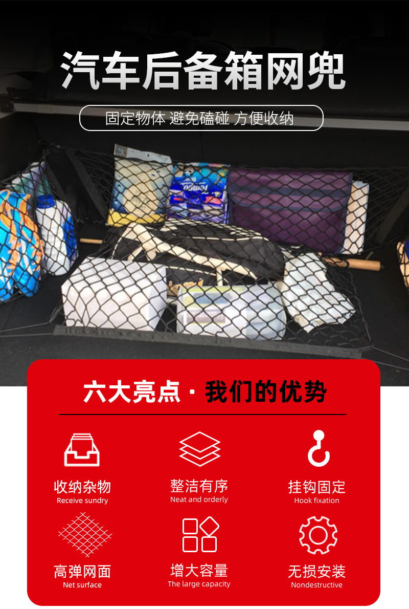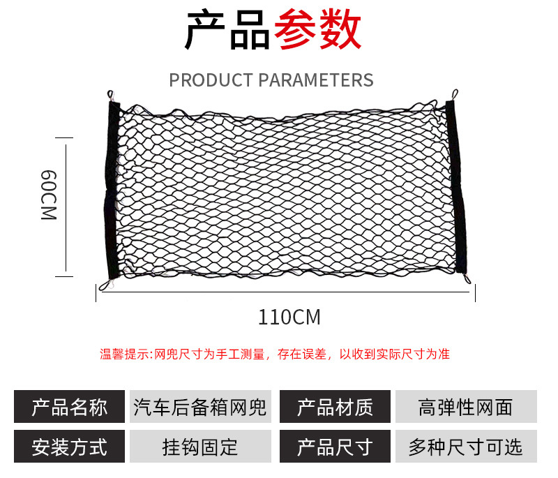 通用后备箱网兜 尾箱网罩 汽车行李网 遮物网储物网110*60cm平网