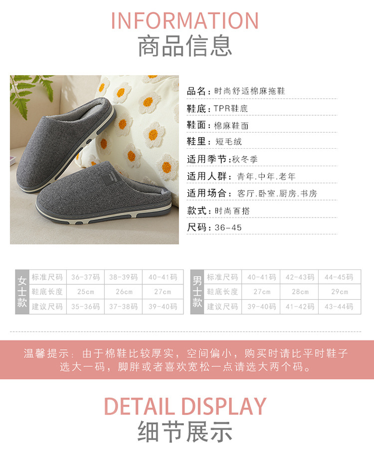 特大码号棉拖鞋女家居秋冬季居家室内保暖情侣毛绒拖鞋厚底月子鞋