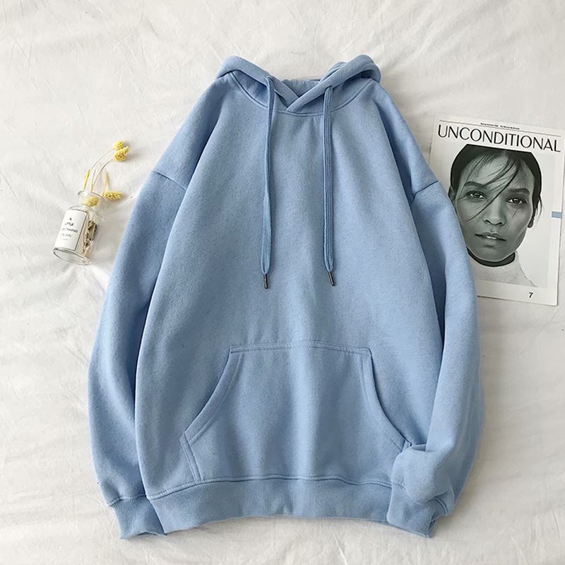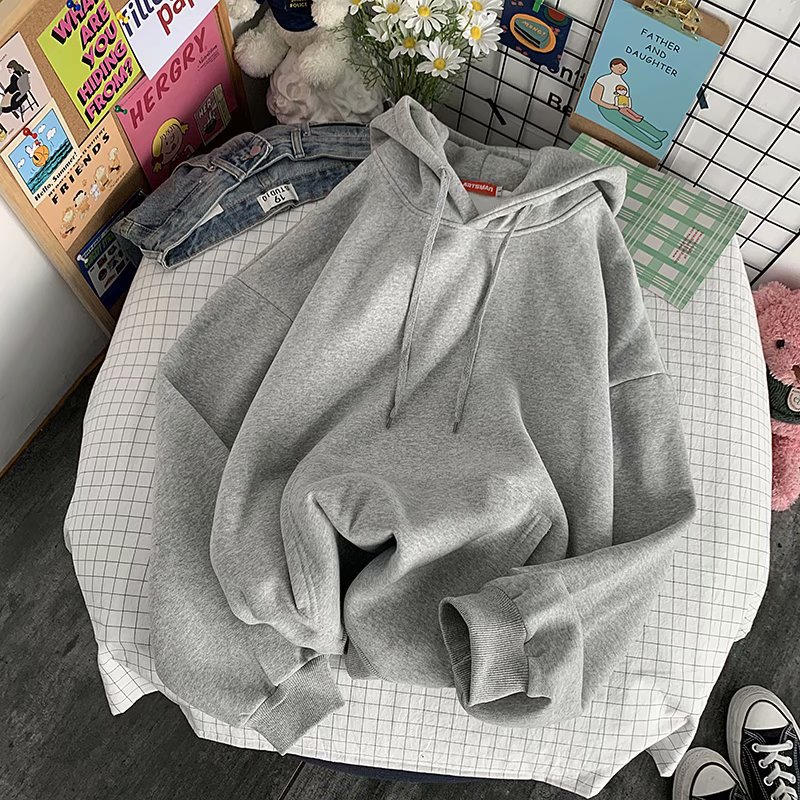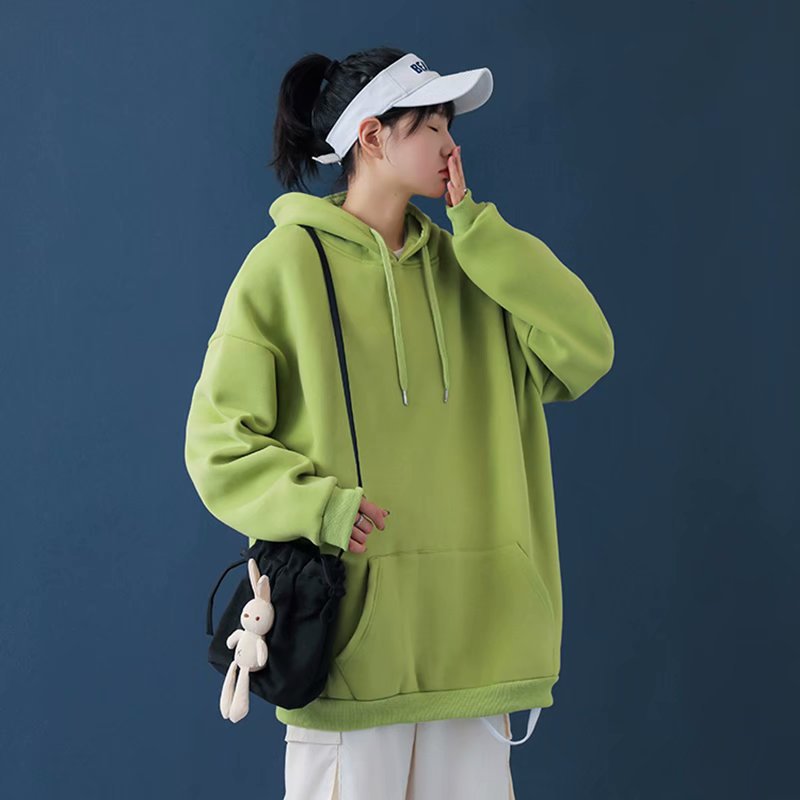 纯色连帽卫衣女宽松韩版宽松慵懒风学生加绒连帽外套休闲情侣装