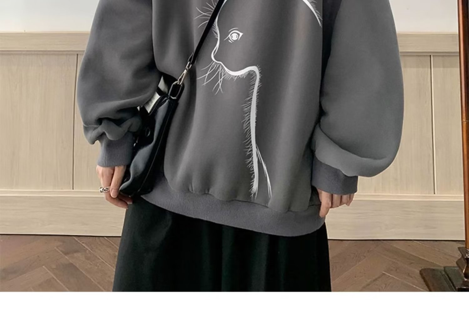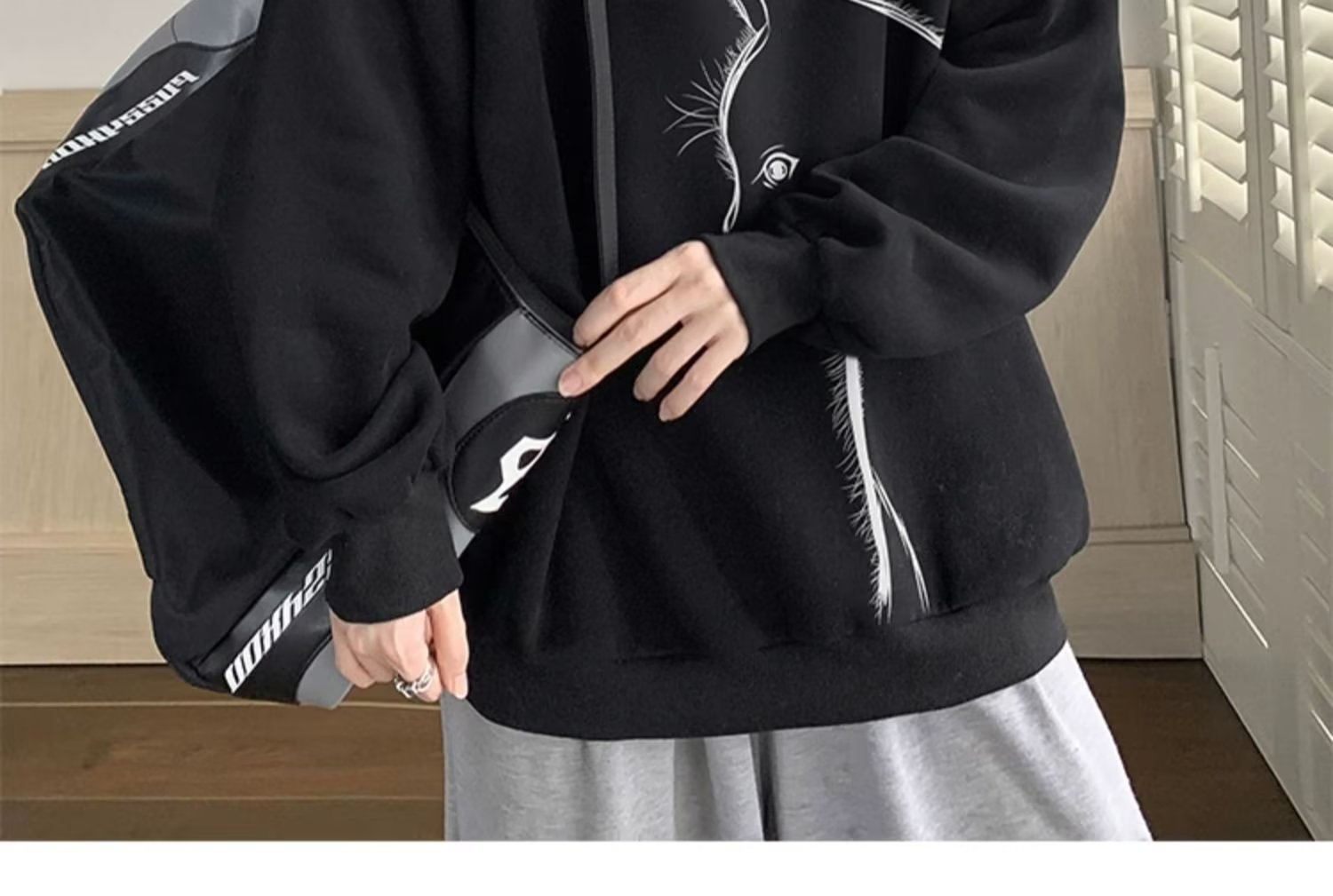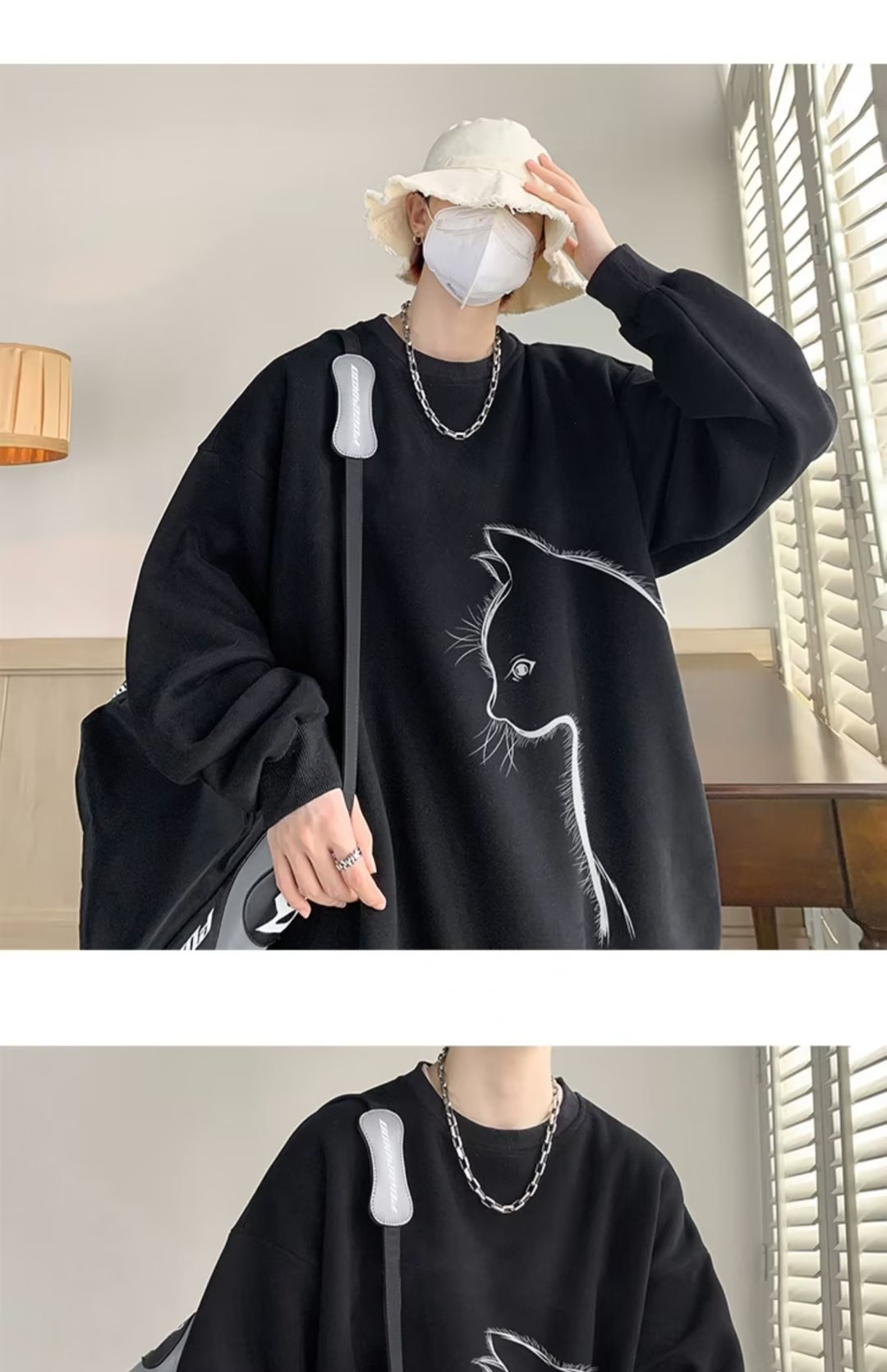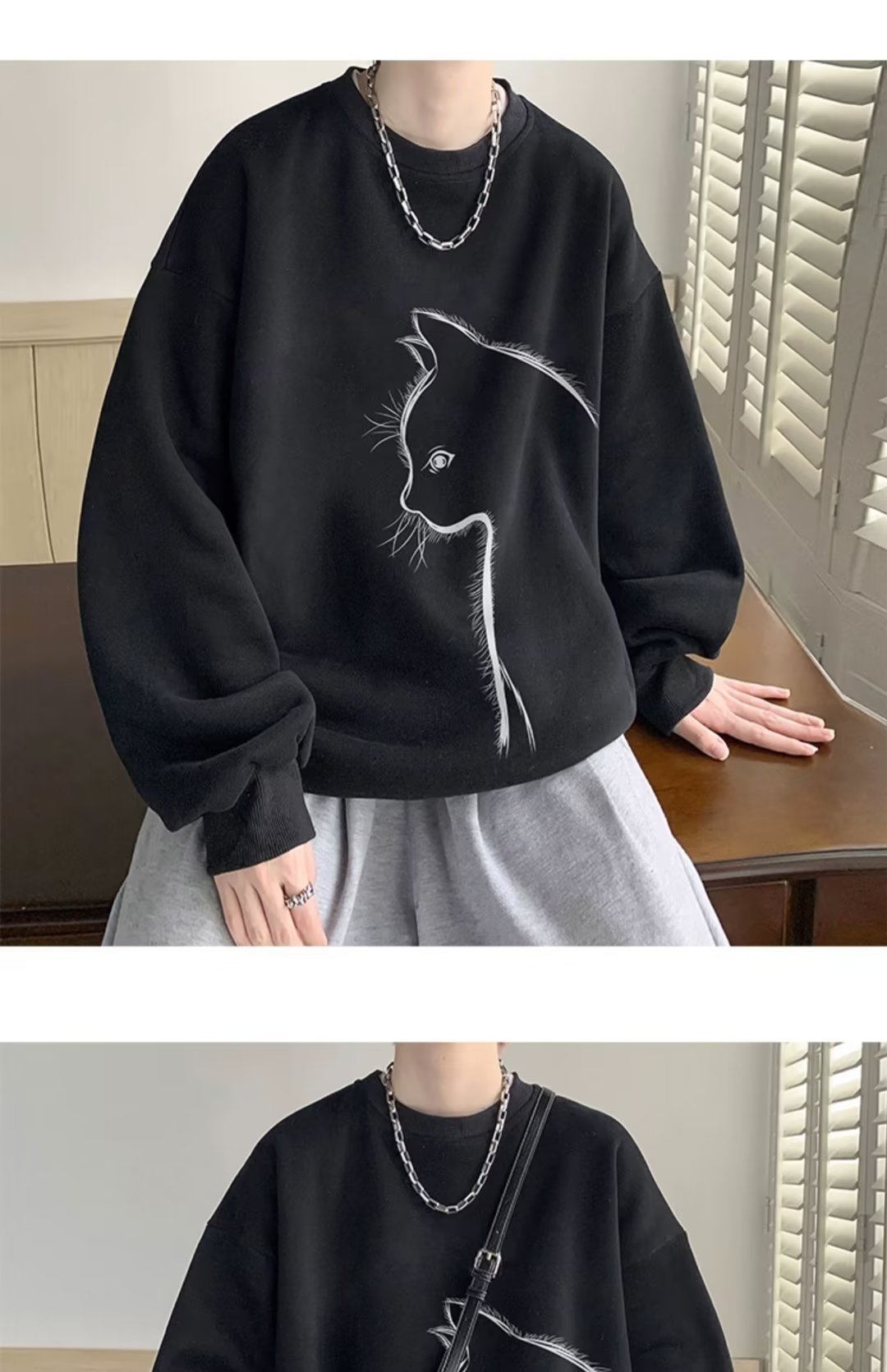 印花秋冬卫衣男2024年春秋季韩版新款圆领宽松上衣港风潮流黑色