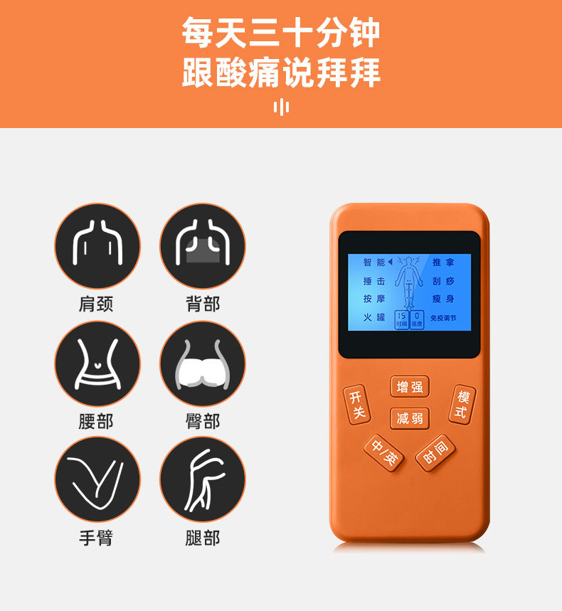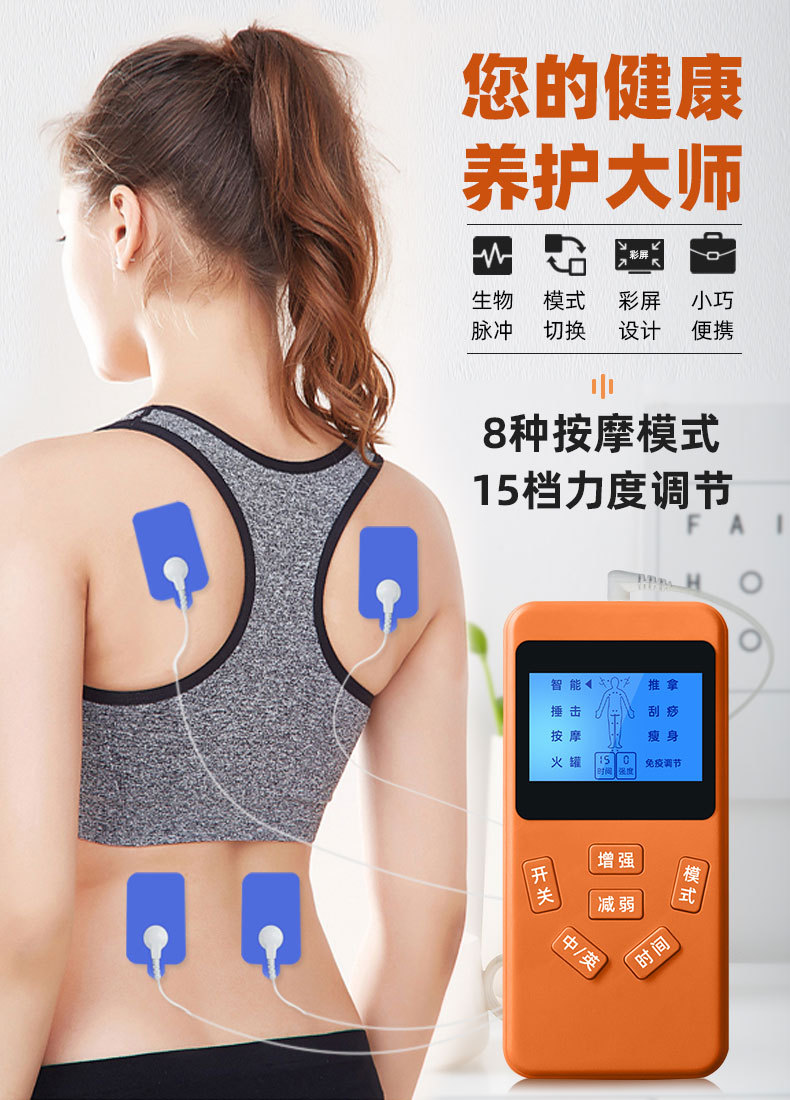 新款蓝屏单孔数码经络肩颈按摩仪家用电子脉冲经络鞋子专用按摩仪