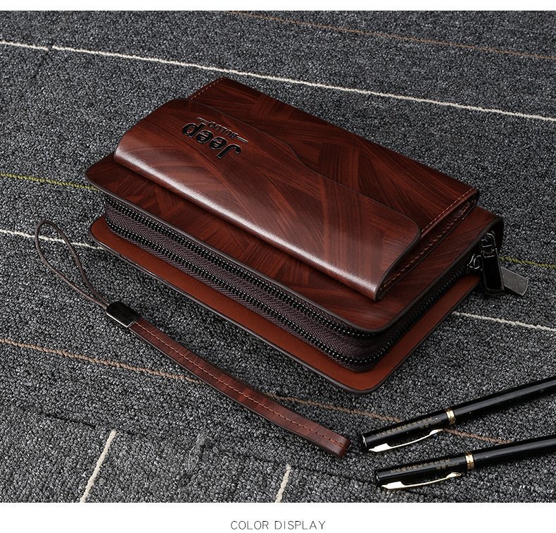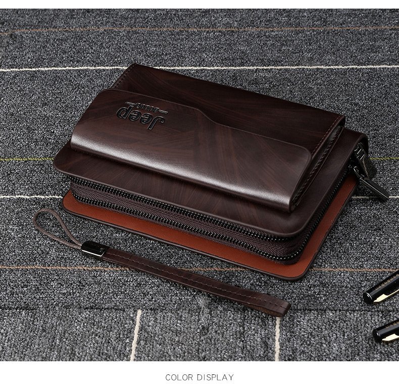 男士pu双拉手包男包多功能钱包商务长款手拿包手抓包夹包男款
