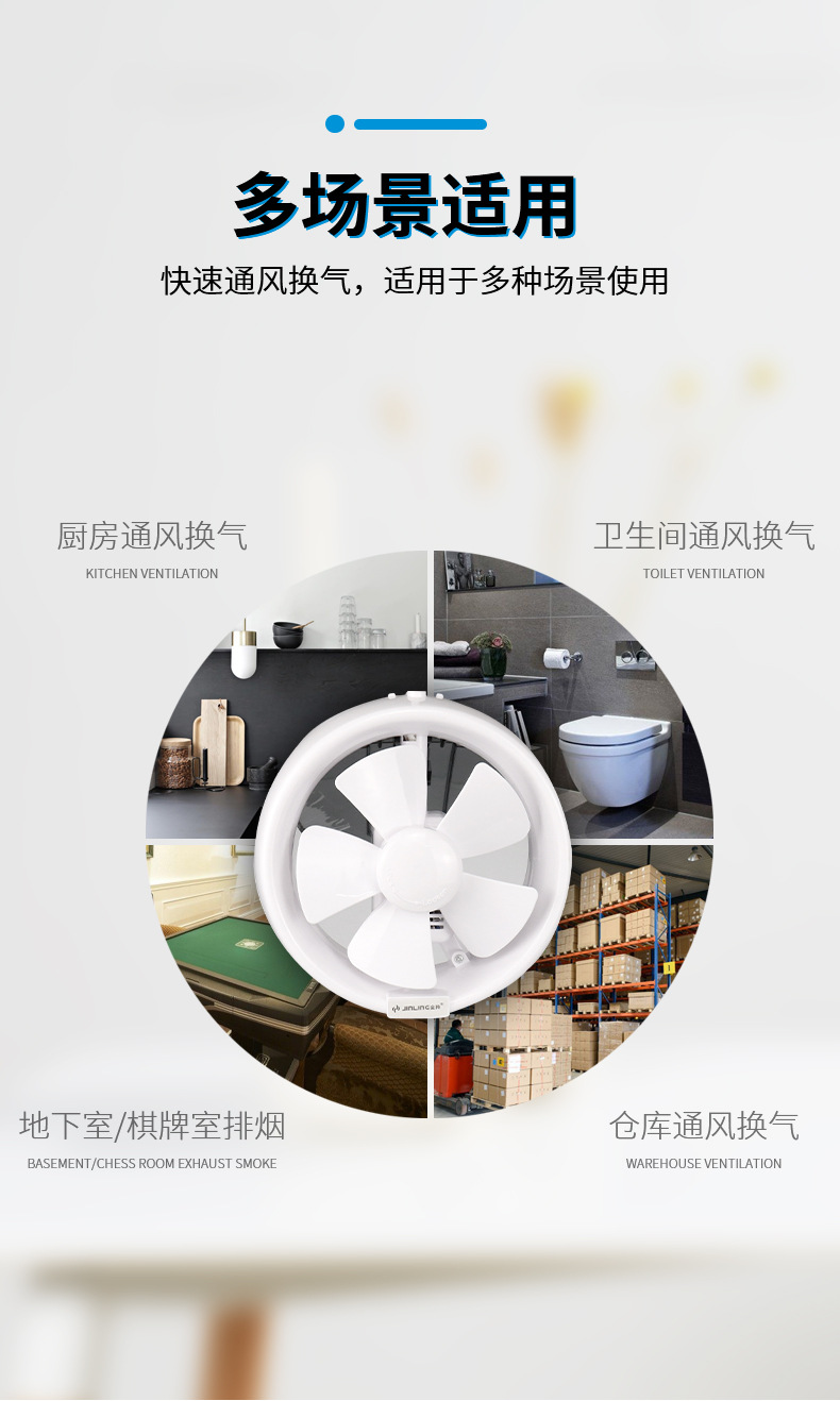 金羚换气扇6寸8拉绳玻璃排风扇厨房卫生间窗式圆形家用抽风机强力
