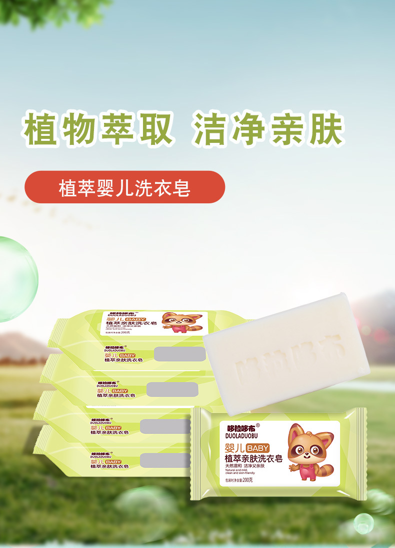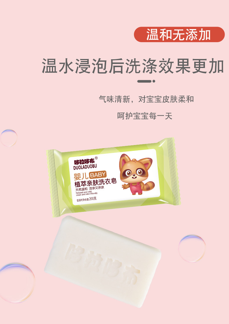 哆拉哆布宝宝洗衣皂200g植物提取儿童皂温和亲肤清洁香皂肥皂6343