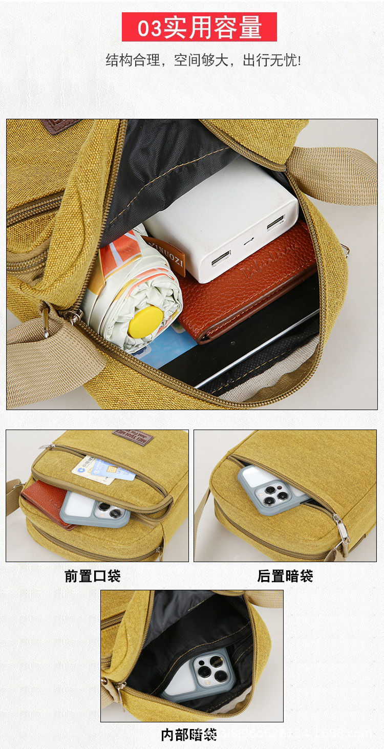 多层生意包收钱包帆布斜跨女包单肩包斜挎包休闲包男款小方包