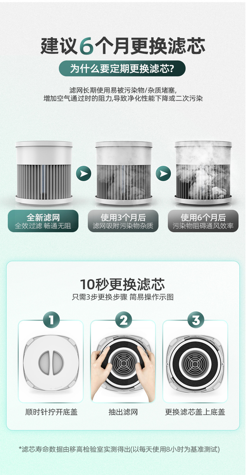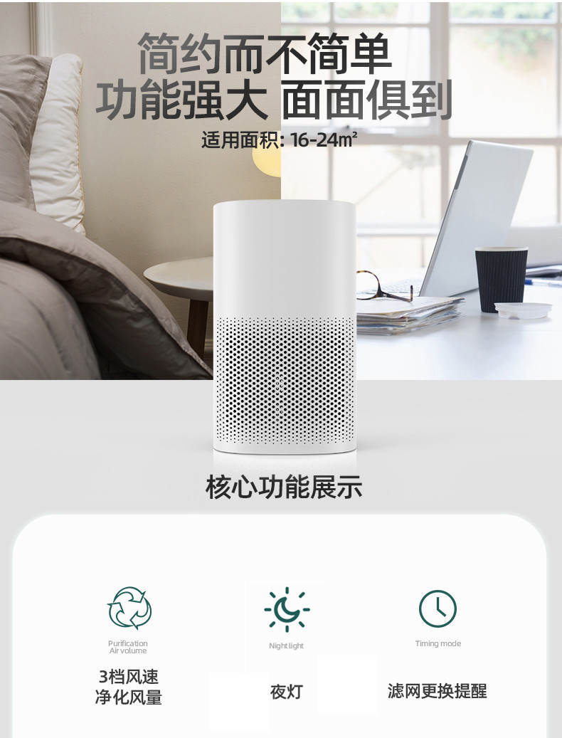 新款室内空气净化机 UVC灯杀菌除甲醛桌面便捷负离子空气净化器