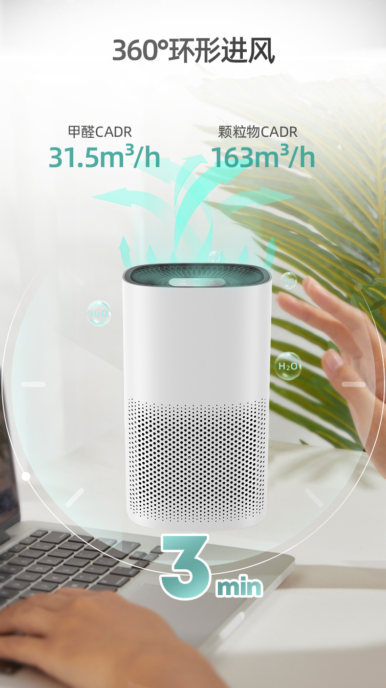 智能室内空气净化机 UVC灯杀菌除甲醛家用迷你负离子空气净化器