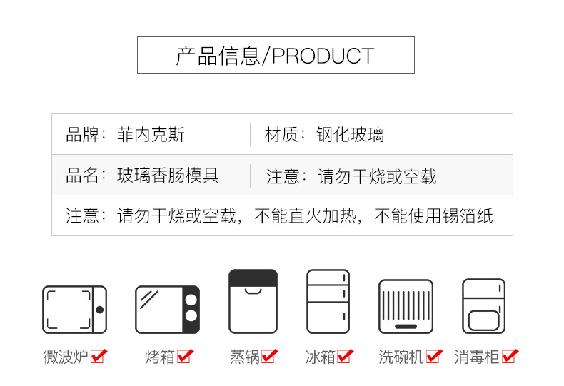 菲内克斯钢化玻璃热狗烤香肠婴儿宝宝辅食模具肉肠自制DIY小工具