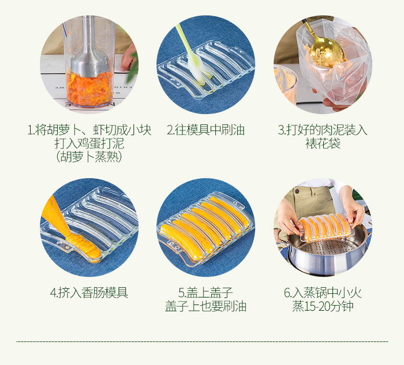 和谐居玻璃耐热高温可蒸煮婴儿宝宝儿童做香肠模具辅食手指肉肠