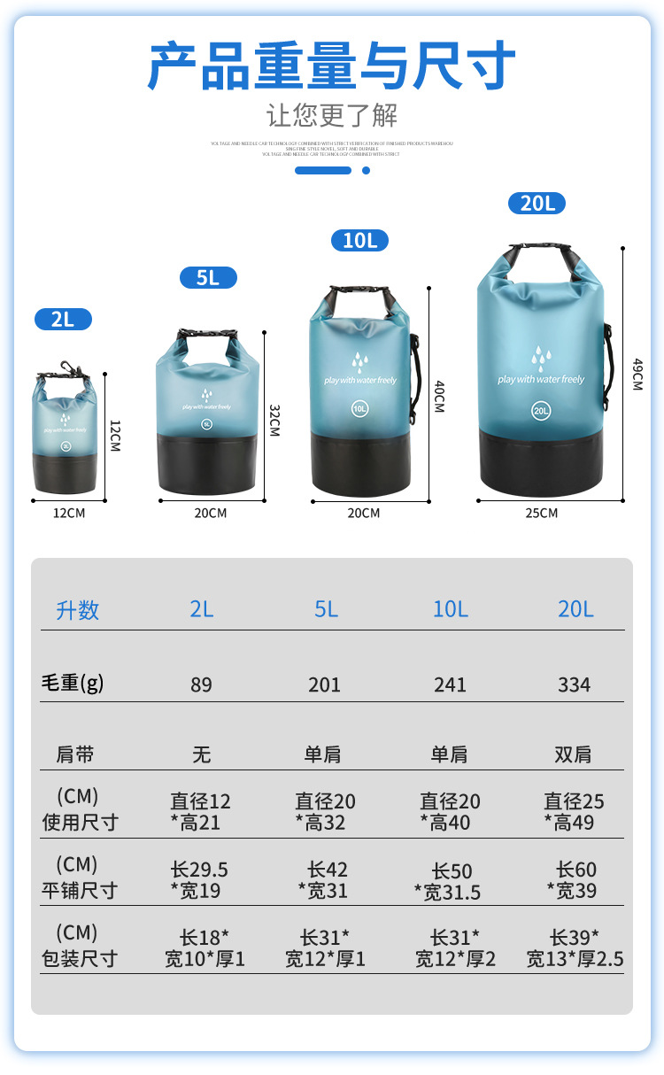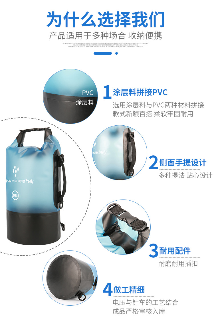 PVC透明沙滩包涂层防水袋简约户外防水包拼色防水桶包轻便薄干包