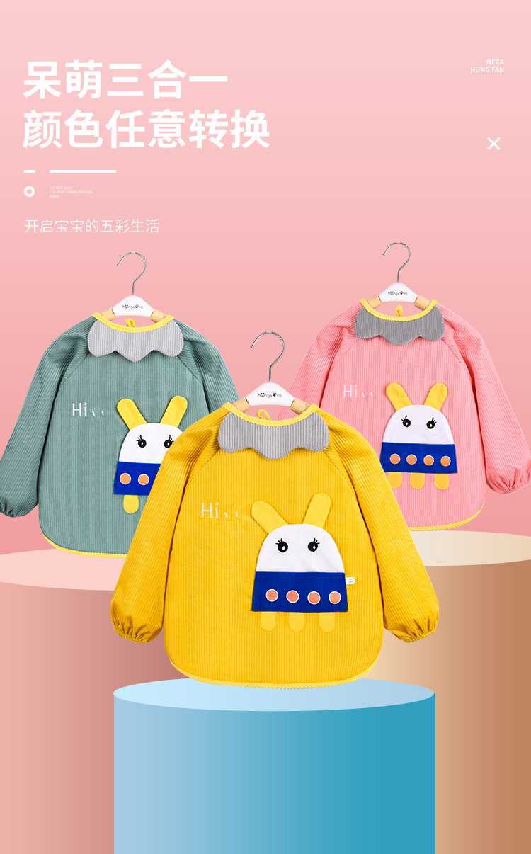 儿童罩衣男宝宝防水防脏吃饭衣男女孩长袖围裙外穿婴儿秋冬反穿衣