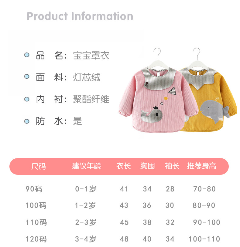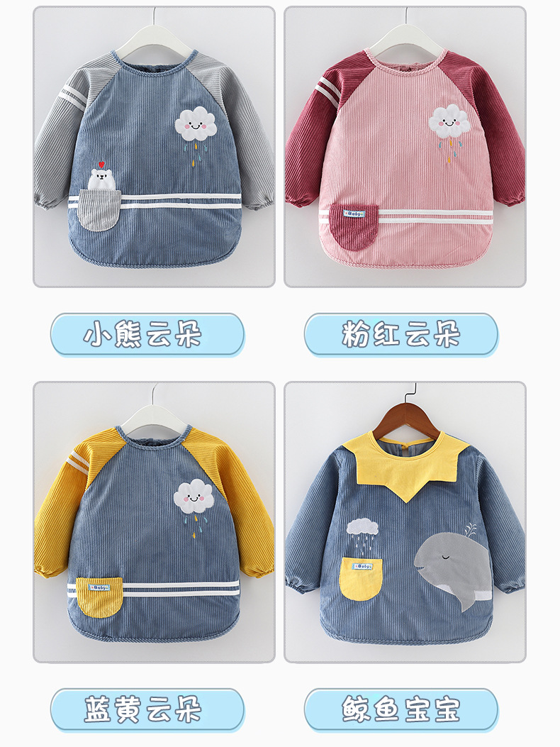 儿童罩衣男宝宝防水防脏吃饭衣男女孩长袖围裙外穿婴儿秋冬反穿衣