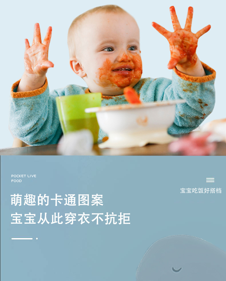 宝宝吃饭一体式餐椅罩衣儿童自主进食全包饭兜围兜衣婴儿辅食防水