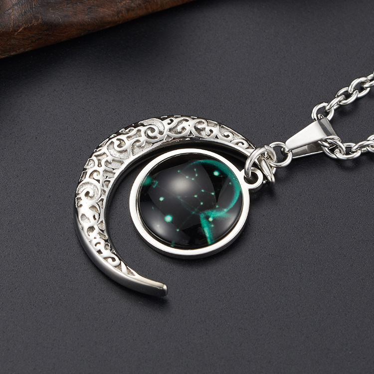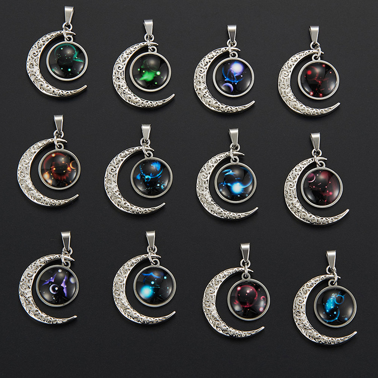 ins潮牌十二星座星空夜光项链 日韩穿搭星星月亮毛衣链钛钢吊坠