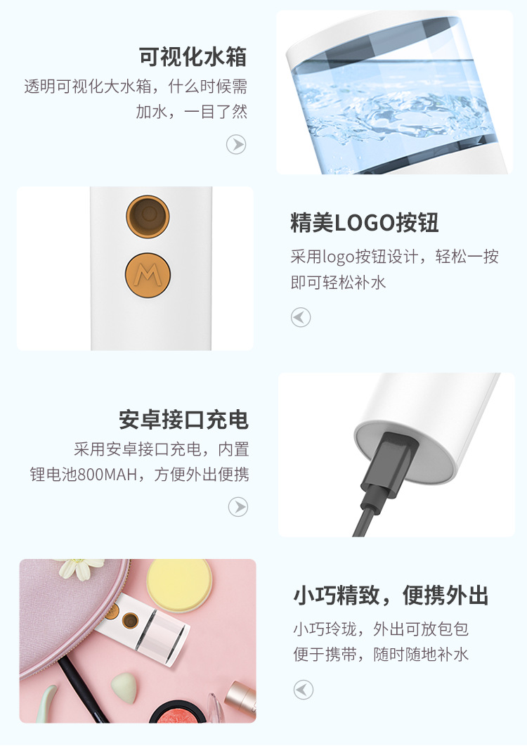 网红迷你纳米喷雾器补水仪器便捷式usb充电脸部加湿补水仪蒸脸器