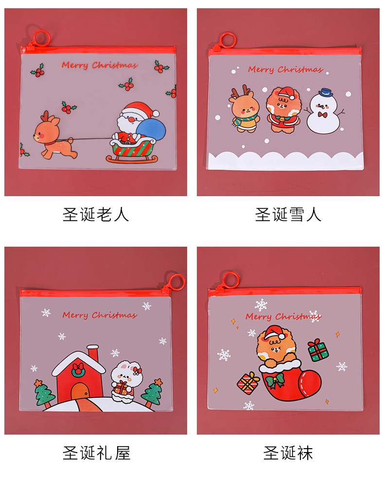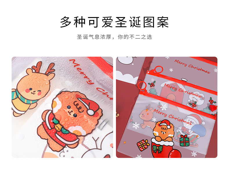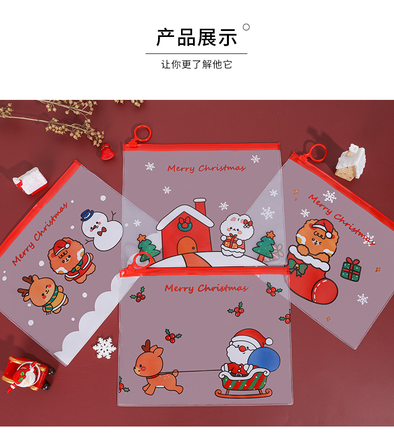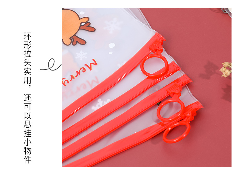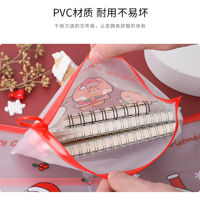 卡通圣诞指环文件袋 学生少女心拉链袋多功能透明文具收纳档案袋