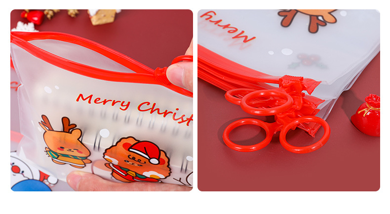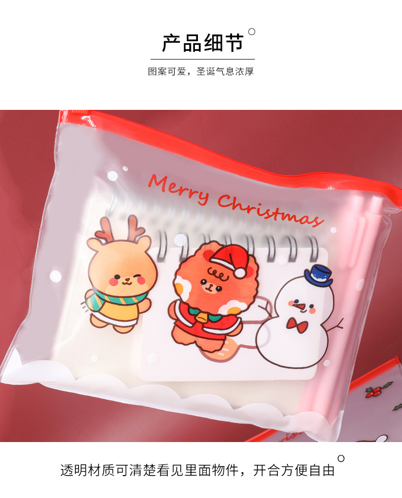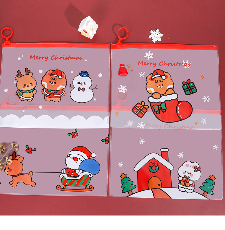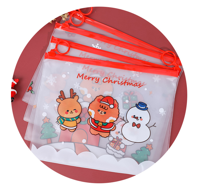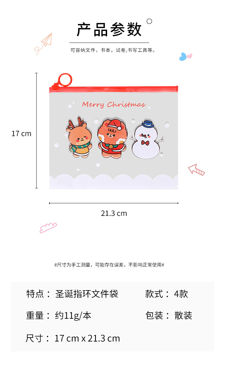 卡通圣诞指环文件袋 学生少女心拉链袋多功能透明文具收纳档案袋