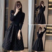 赫本风黑色长袖连衣裙女2025秋季中长款时尚收腰显瘦a字蓬蓬裙子