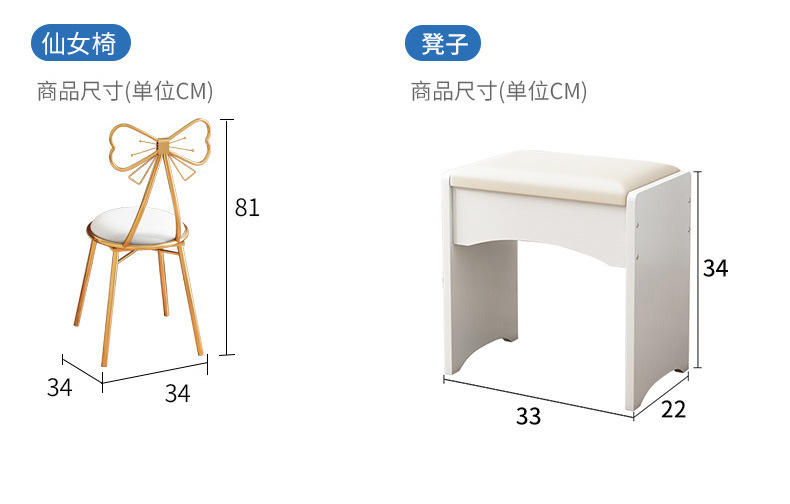 限时特惠 【LED灯镜+双抽+仙女椅】80cm