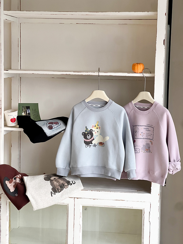 【加绒】艾摩贝贝男女童韩版休闲校园单穿内搭套头衫保暖卡通卫衣