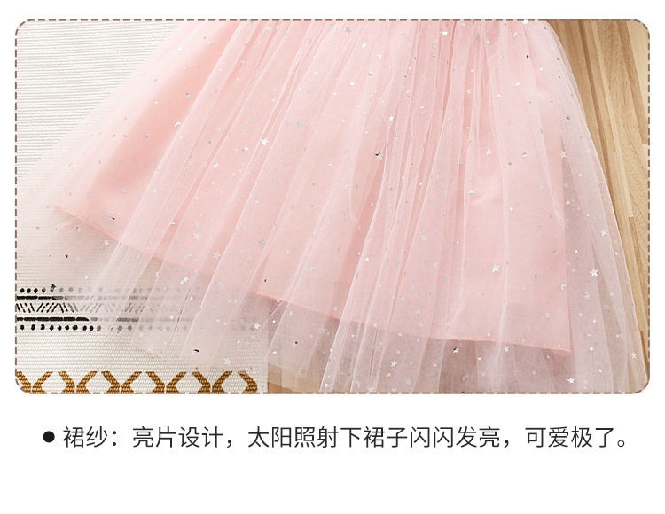 越己服饰女童新款童公主裙 韩版儿童拼五角星网纱长袖连衣裙