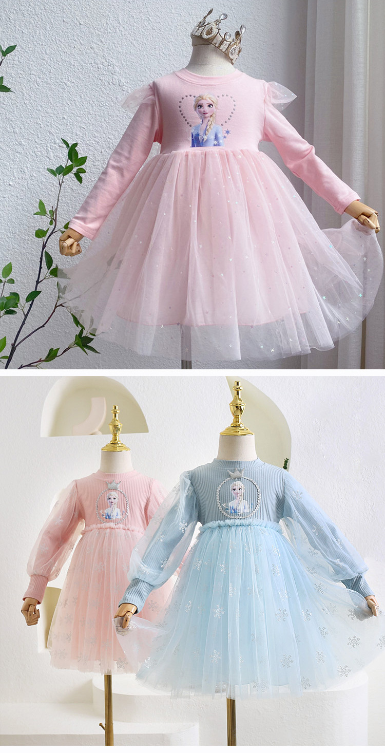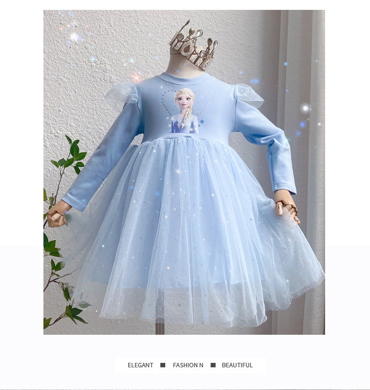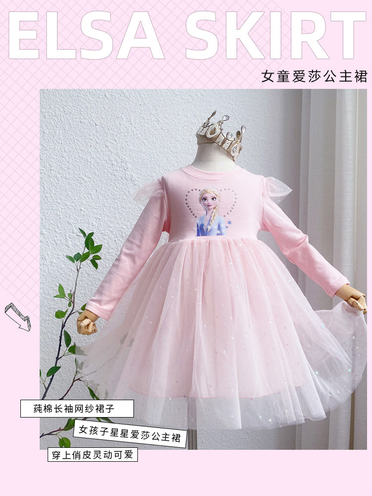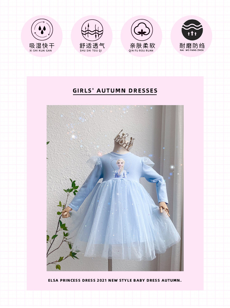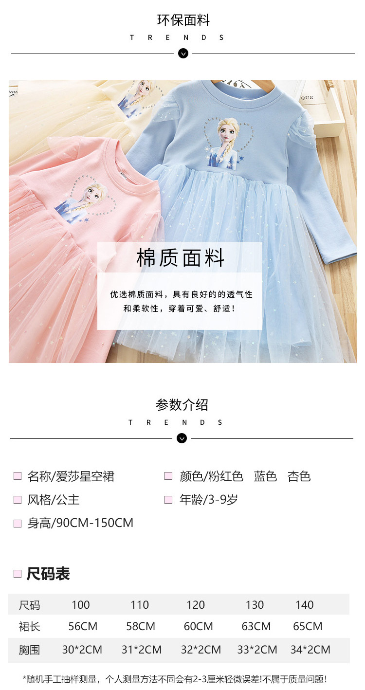爱莎公主裙子女童春秋款冰雪奇缘儿童秋季洋气爱沙蓬蓬纱连衣裙潮