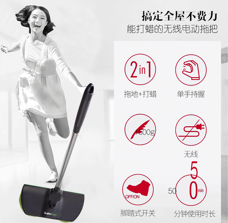 TV新品 Spin Maid 电动拖把 无线电动旋转拖把 可充电扫地机 现货