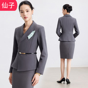 2025秋季职业装灰色西装套裙女套装职场酒店物业前台珠宝店工作服