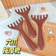 六爪头部经络梳鹿角檀木纹五爪梳头五指头皮按摩梳刮痧头疗五指梳